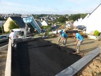 Lors de petites surfaces, l'application de l enrobé se fait manuellement par une équipe super motivée !!